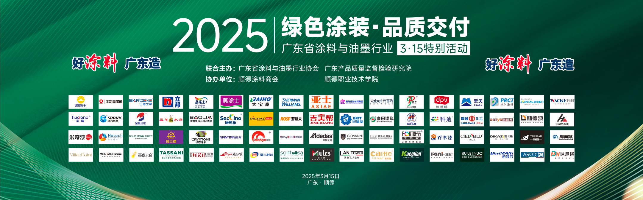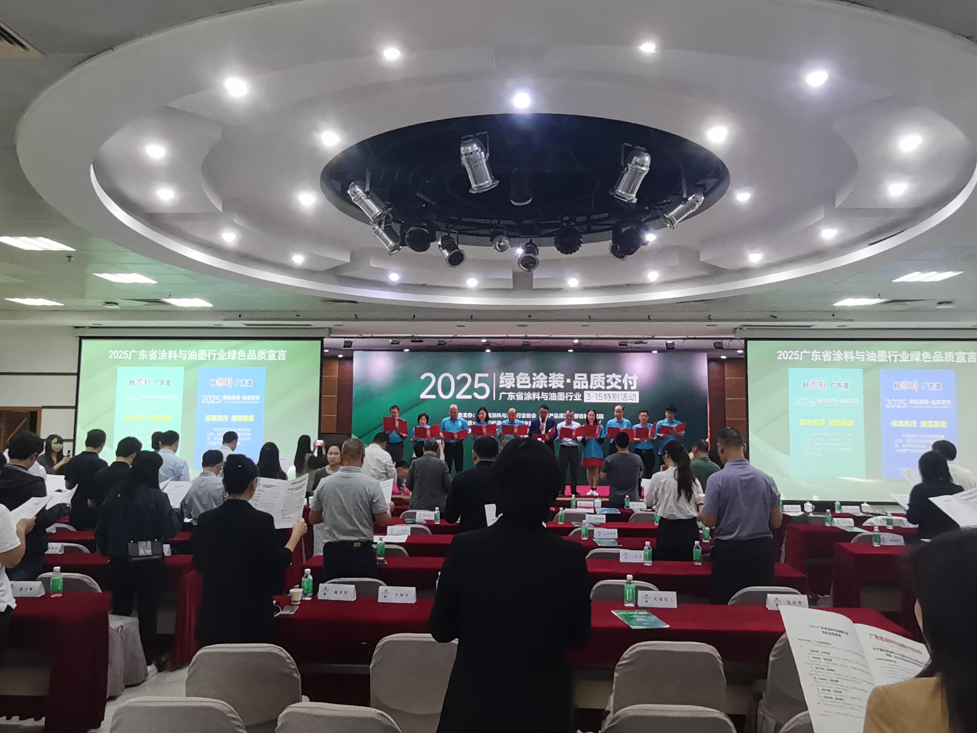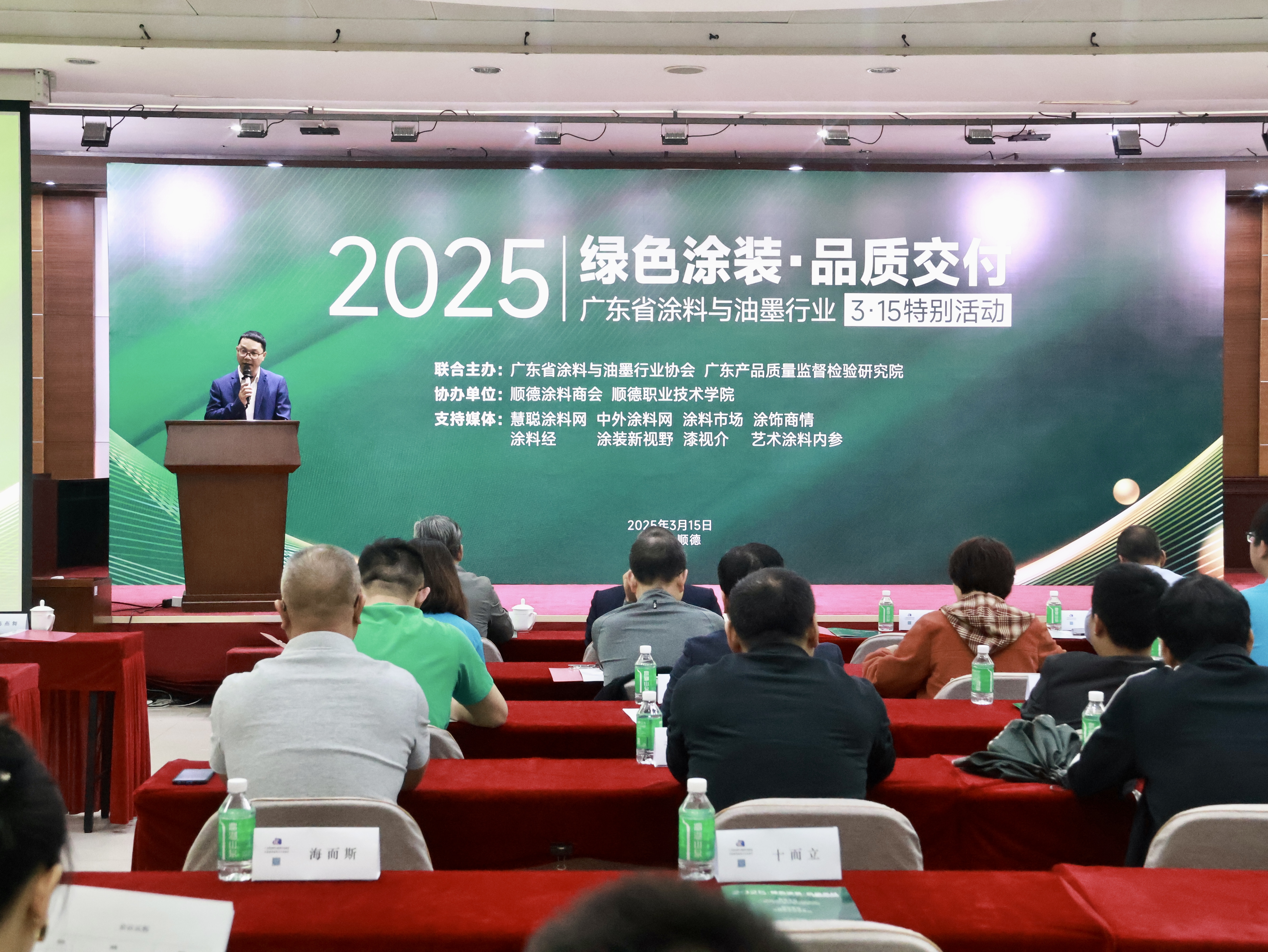 在國(guó)務(wù)院政府工作報(bào)告提到“發(fā)揮好行業(yè)協(xié)會(huì)商會(huì)行業(yè)自律作用”的背景下,廣東省涂料與油墨行業(yè)協(xié)會(huì)作為5A級(jí)社會(huì)組織積極響應(yīng)政策號(hào)召,2025年3月15日,聯(lián)合廣東產(chǎn)品質(zhì)量監(jiān)督檢驗(yàn)研究院(順德基地)于順德隆重舉辦“綠色涂裝·品質(zhì)交付”3·15特別活動(dòng)。活動(dòng)匯聚企業(yè)代表、檢測(cè)機(jī)構(gòu)、經(jīng)銷商、消費(fèi)者代表,蒙太奇作為廣東藝術(shù)涂料標(biāo)桿企業(yè),受邀參加此次行業(yè)活動(dòng)。