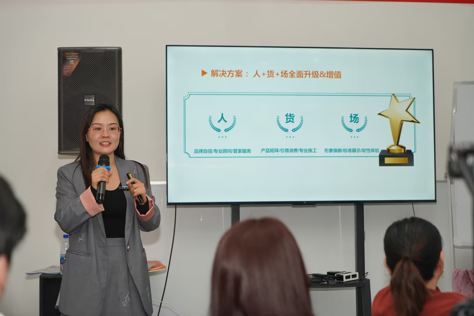 4 月西南戰區聯動啟動會于貴陽召開,活動集成“新媒體賦能&區域聯動啟動會&金牌墻藝師特訓營”。特訓營中,呂芳方女士帶來升級版賦能方案:從流量獲取到客戶轉化,從產品講解到售后服務,進行全流程實戰演練。在51 惠裝季中,西南戰區交出789 單總簽單、預計銷售額突破1580萬+元的成績單。尤為突出的是,單店爆破活動中,四川遂寧店以目標完成率240%的卓越表現,成為區域爆發式增長的標桿門店,其成功為其他終端門店提供可復制的實戰范本,充分彰顯了精準賦能對終端業績提升的顯著效能。