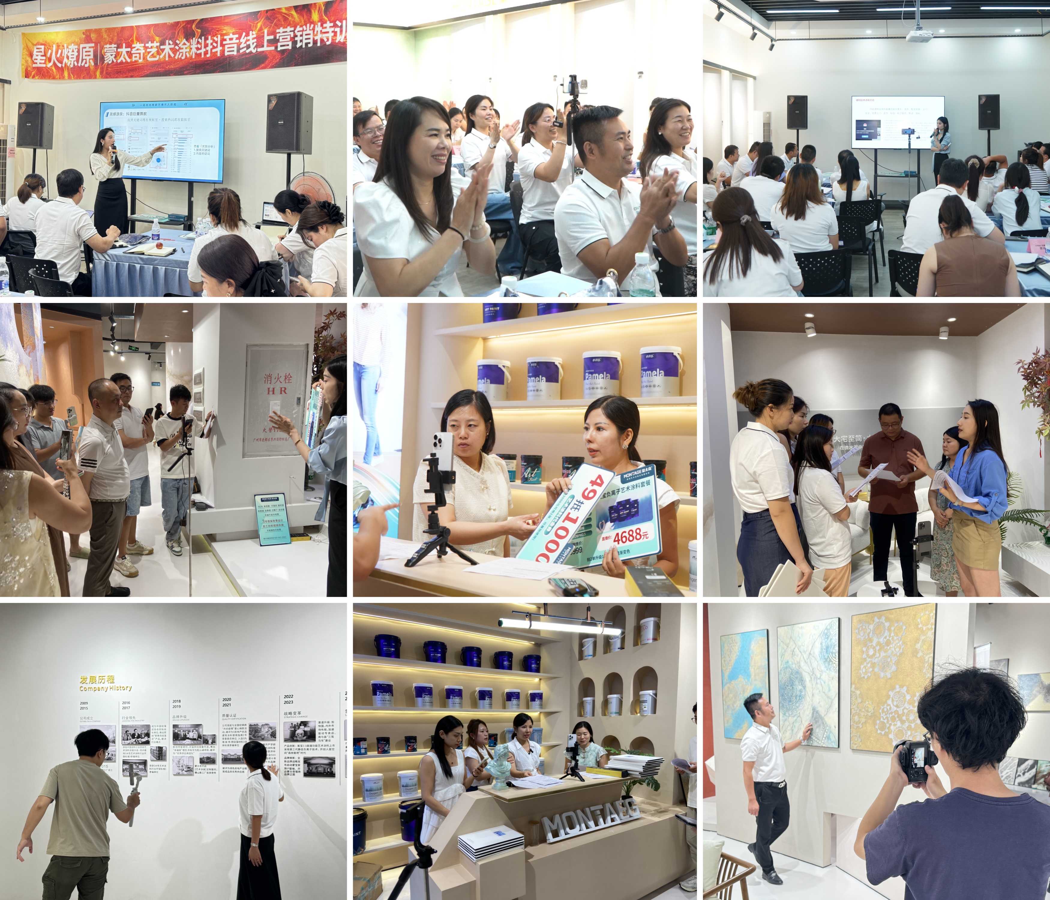另一方面離不開蒙太奇的深化終端流量賦能之路, 已成功開展多期“新媒體流量特訓營”,蒙太奇藝術涂料總部手把手賦能終端門店掌握短視頻創作、直播運營、粉絲互動等數字化營銷硬核技能。此舉有效助力單店突破地域限制,打造區域流量標桿,讓經銷商切實共享平臺流量紅利。