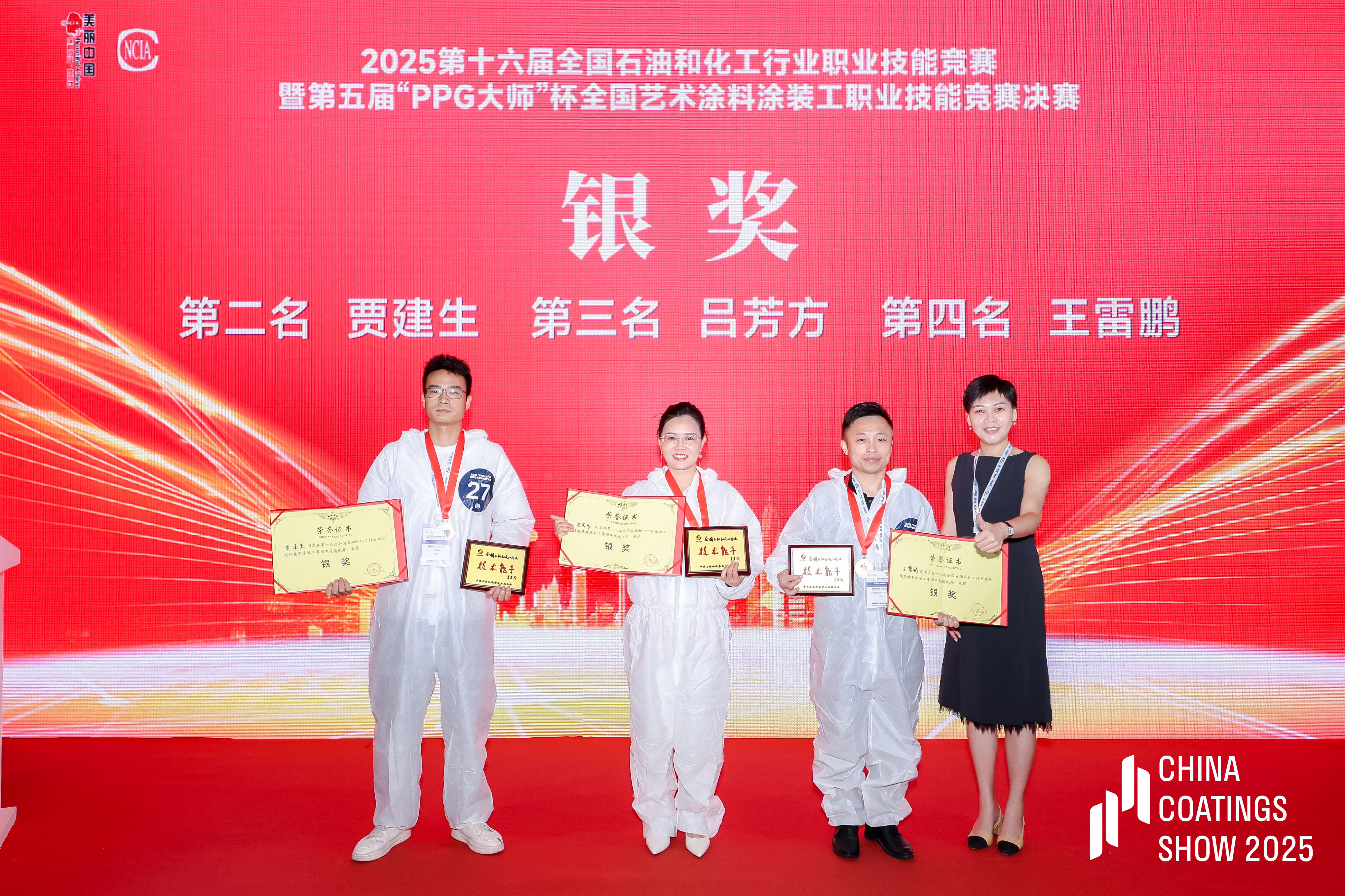 在幾天激烈的角逐中,蒙太奇藝術漆以"理論+實操"雙優表現驚艷全場。由蒙太奇董事長趙廣全先生與蒙太奇聯合創始人、藝術涂料最美老板娘呂芳方女士作為代表參賽,憑借對藝術涂料前沿趨勢的深刻洞察與精湛技藝,與全國30名優秀墻藝師同臺競技,從初賽到決賽一路過關斬將,最終以總分第三名的成績榮膺第五屆“PPG大師”杯銀獎。
