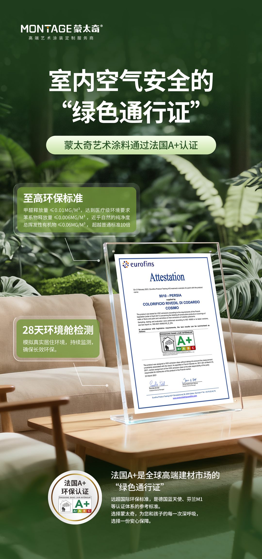 蒙太奇以四大權威認證,鑄就居家“森林氧吧”健康墻面新標準!