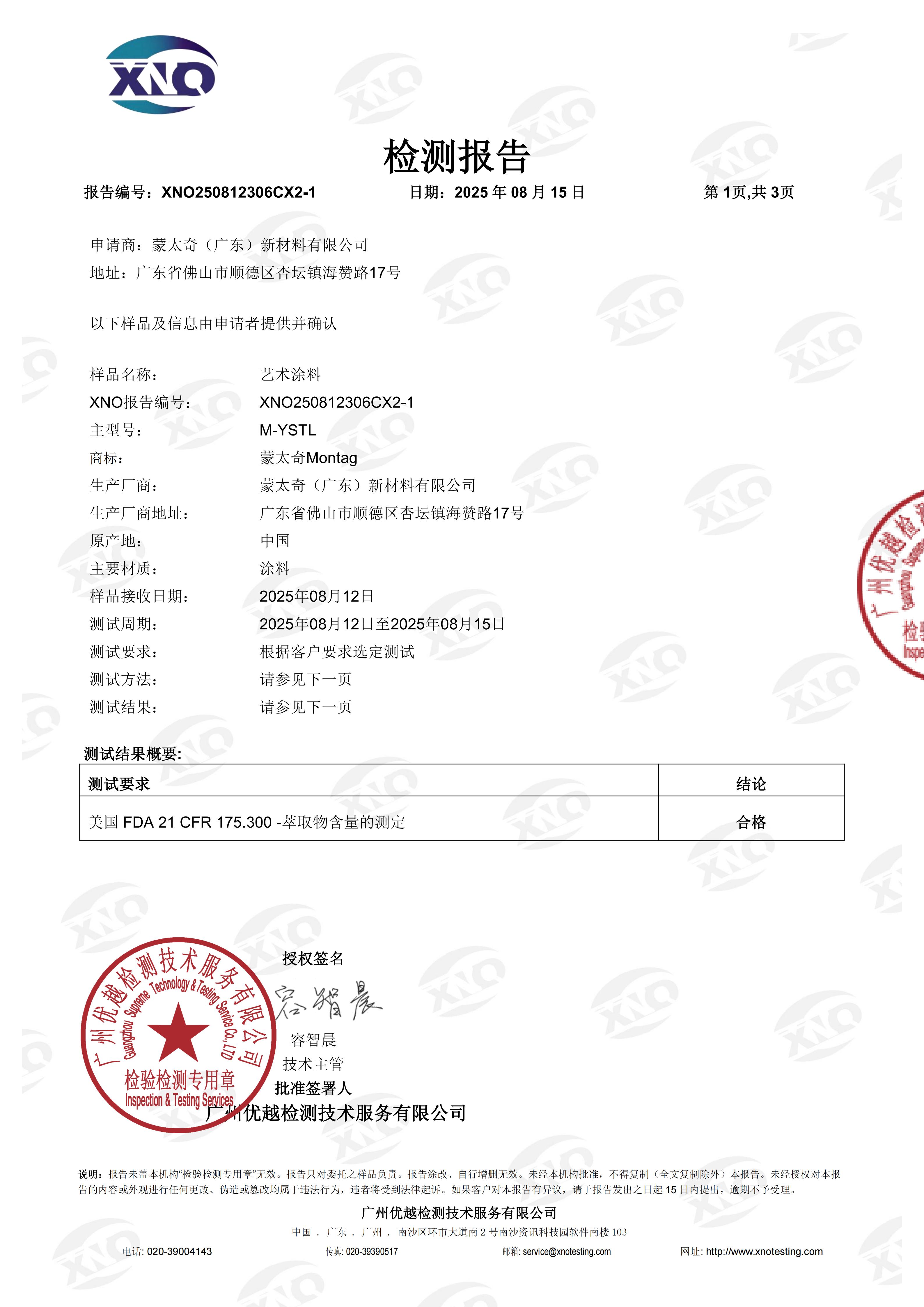 美國FDA認(rèn)證:作為全球最具權(quán)威性和公信力的食品藥品監(jiān)管機(jī)構(gòu)之一,其制定的標(biāo)準(zhǔn)以科學(xué)、嚴(yán)謹(jǐn)、全面著稱,被公認(rèn)為全球食品、藥品安全與質(zhì)量的“黃金準(zhǔn)則”。藝術(shù)涂料企業(yè)通過FDA認(rèn)證,意味著產(chǎn)品的安全性得到了國際權(quán)威機(jī)構(gòu)的認(rèn)可,更好地保障消費(fèi)者的健康和安全。