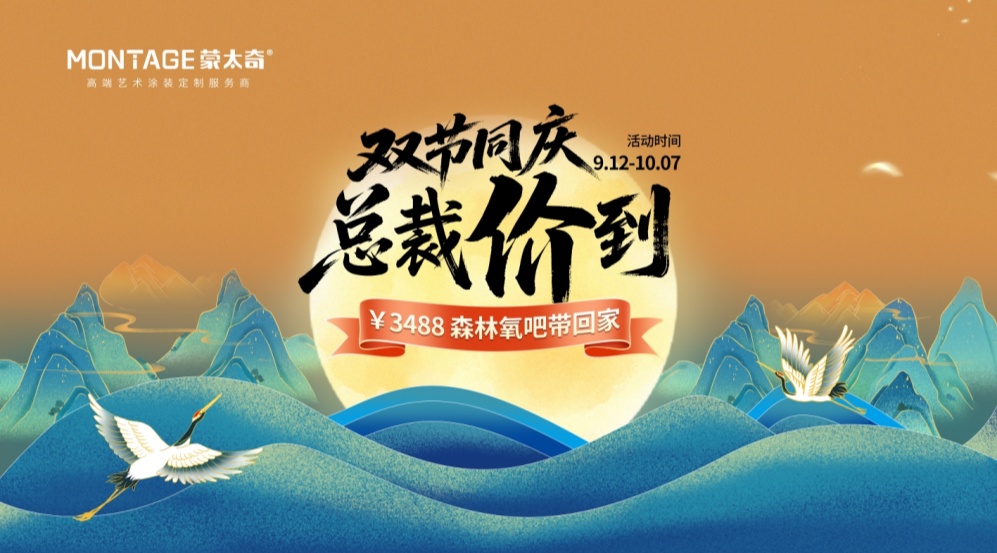 權(quán)威認(rèn)證與硬核技術(shù)的雙重保障,讓蒙太奇藝術(shù)漆成為高端家裝市場的環(huán)保首選。值此國慶佳節(jié),蒙太奇特別推出“雙節(jié)同慶,總裁'價'到”大促活動。即日起至10月7日,消費(fèi)者可享49元抵1200元代金券、全房升級氧寶“森林氧吧”鉅惠(升級部分可享總部補(bǔ)貼50%)、直播間抽對開門冰箱等多重福利。優(yōu)惠名額有限,請前往全國蒙太奇門店鎖定福利,讓這個國慶,輕松打造綠色森林之家。
